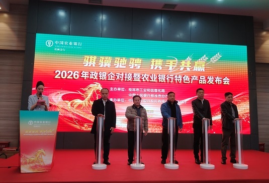2月6日,2026桂林市政银企对接暨农业银行特色产品发布会在桂林碧玉酒店举行。本次活动由市工信局、中国人民银行桂林市分行联合主办,中国农业银行股份有限公司桂林分行承办,旨在搭建政府、银行、企业三方联动的沟通桥梁,以金融之水润实体,以协同之力促发展,精准破解企业融资难题,持续擦亮桂林优质营商环境“金名片”。